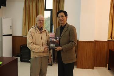 讲座结束,Arthur教授将他自己的新书《MEDIA ANALYSIS TECHNIQUES》第6版赠予博彩平台网址大全 ,董天策院长代表学院接受了Arthur教授的馈赠。
