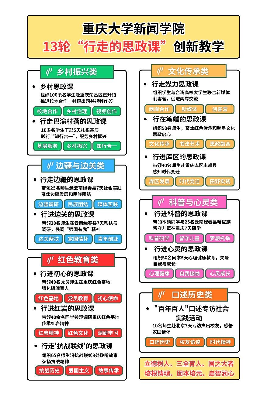 自2024年5月开始以来的13次“行走的思政课”建设情况。 师生们一致认为:“行走的思政课”打破了传统课堂的界限,让思政教育“活”起来、“实”起来、“深”起来。
