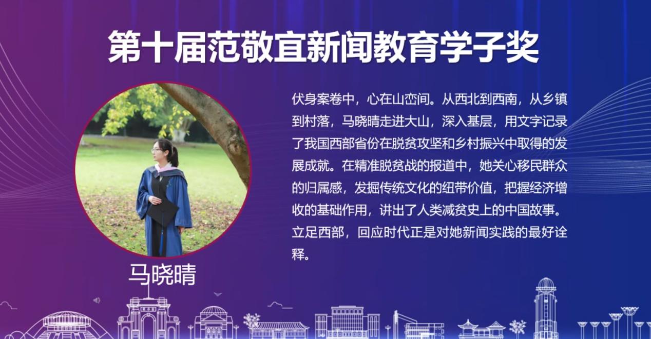2013年以来,范敬宜新闻学子奖已连续举办10届。此前,博彩平台网址大全 2015级研究生班志斌、2018级研究生张雅婕分别于2017、2020年获得第五届、第八届范敬宜新闻学子奖。